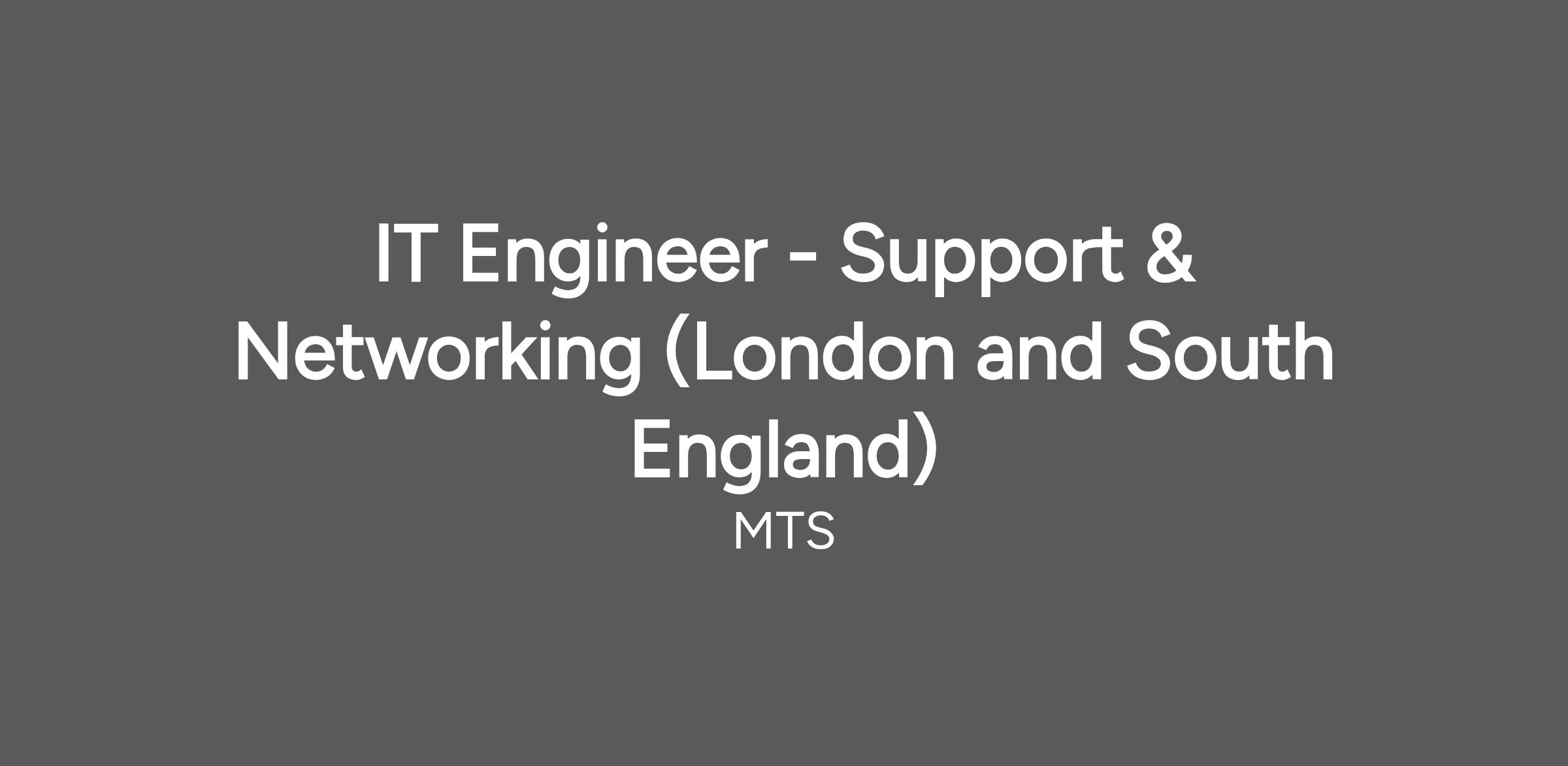MTS is currently looking for an IT Engineer - Support & Networking.