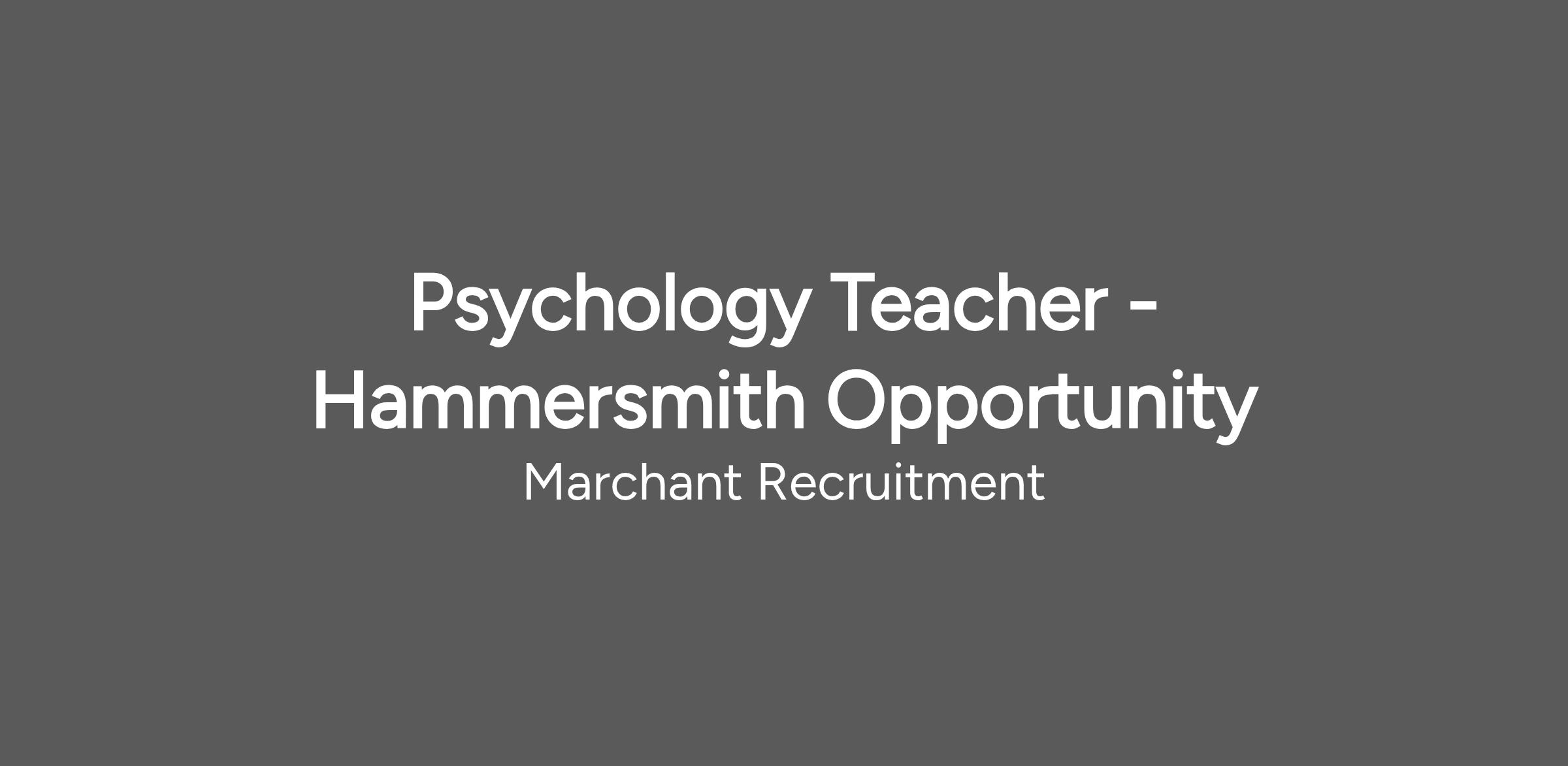 To be considered for this Psychology Teacher role at an "Outstanding" school in Hammersmith, starting September 2026, please submit your CV at your earliest convenience.