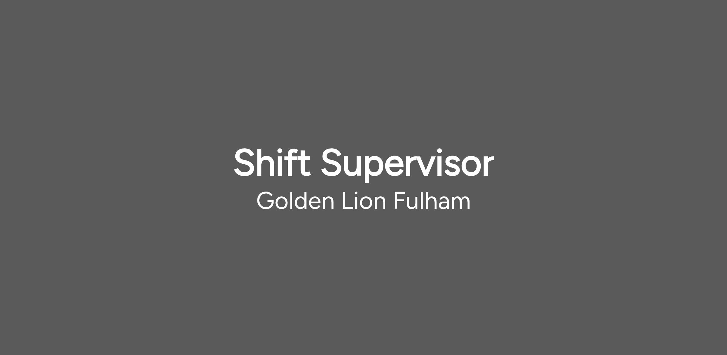 As Part Time Shift Supervisor at the Golden Lion Fulham, you’ll give a warm welcome to everyone who visits. With a passion for great service and training great people, you’ll lead a team that keeps our guests coming back for more.