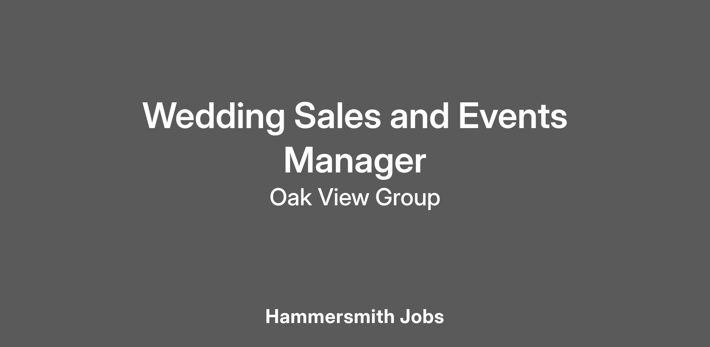 The Weddings & Events Sales Manager is a mid-level position within our sales team, responsible for driving sales across a high-profile, multi-faceted venue. (Fulham Palace)